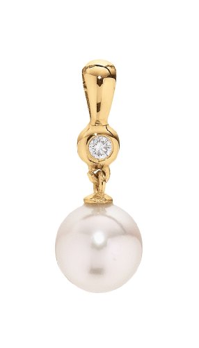 Adriana - E13 - Pendentif Femme - Or Jaune 585/1000 (14 cts) - Diamant - Perle de culture d'Akoya
