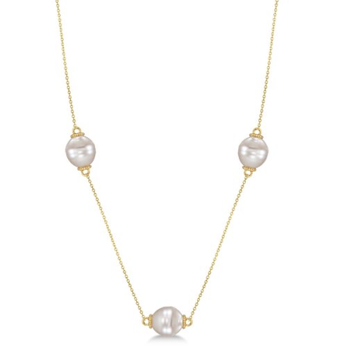 Chaque perle des mers du Sud sur ce collier est une belle blanc nuancé de gris.