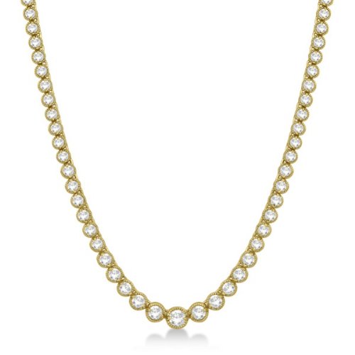 Take your favorite styles of the past into the present with this eternity diamond necklace. Showcasing 7.05 carats worth of brilliant-cut diamonds on 16 inches of solid 14k yellow gold. each in its own milgrain-edged prong mounting. this is a classic look that will never go out of fashion.