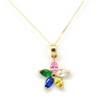 Pendentif en Fleur Colorée en Or Jaune 375/1000 sur une Fine Chaîne de 45cm Par Jakob Strauss