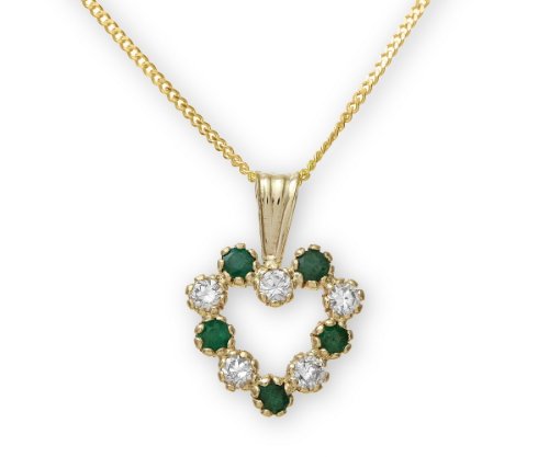 Pendentif + Chaîne Femme Coeur Or 375/1000 avec Oxyde de Zirconium, Emeraude