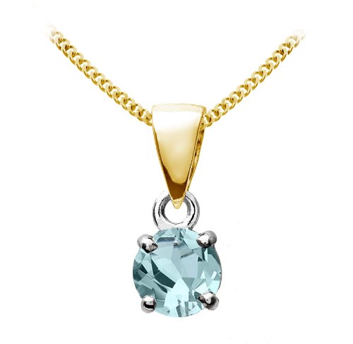 Pendentif + Chaîne Femme Solitaire Or 375/1000 avec Aquamarine 0.25 Carat - 9mm*5mm Chaîne 45 CM