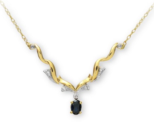 Collier - Femme - Or jaune (9 carats) 1.86 Gr - Diamant - Saphir 0.62 Cts