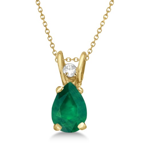Ce pendentif diamant et émeraude est en or jaune 14K. Ce collier dispose D'une belle pierre précieuse émeraude 6x4mm poire (.70 tw) avec une belle diamant 0.02 ct pour compléter la pierre de naissance véritable de mai.